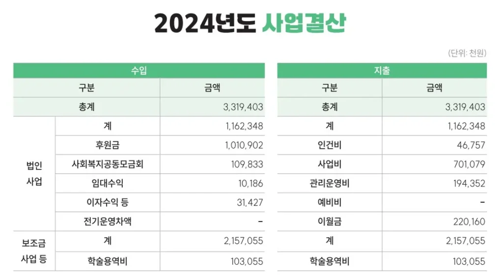 본 자료는 2024년 1월 1일부터 2024년 12월 31일까지의 자료로 재단의 모든 수입과 지출에 대해서는